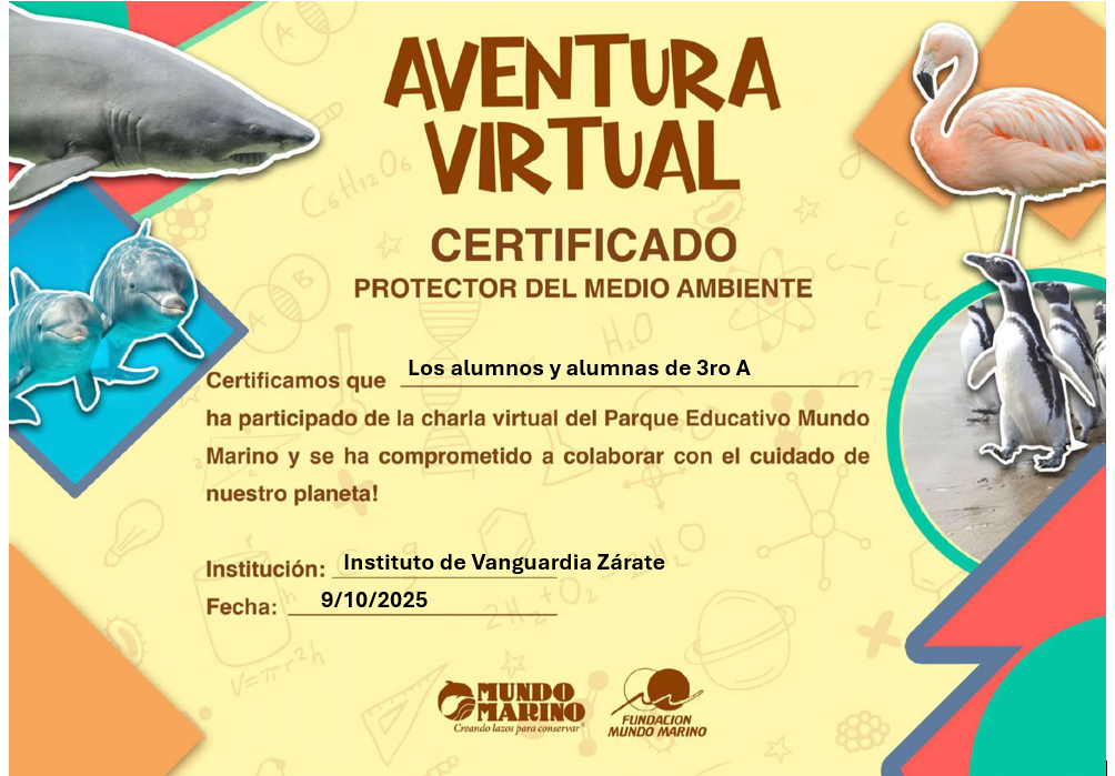 Esta propuesta resultó una excelente oportunidad para reforzar y recordar los contenidos ya vistos en clase, de una manera dinámica y entretenida. Al finalizar, la institución recibió un certificado de participación, reconociendo el compromiso de nuestros alumnos y docentes con el aprendizaje.